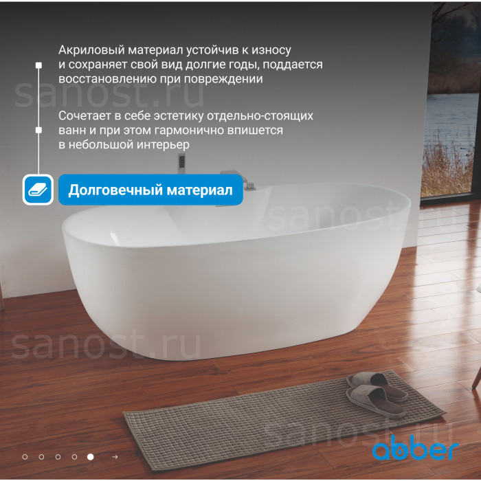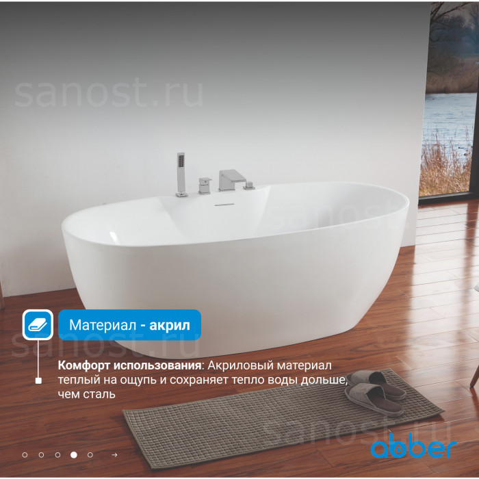 Акриловая ванна ABBER AB9323 белая универсальная отдельностоящая, материал акрил, объём 220 литров. Германия. Гарантия 10 лет.