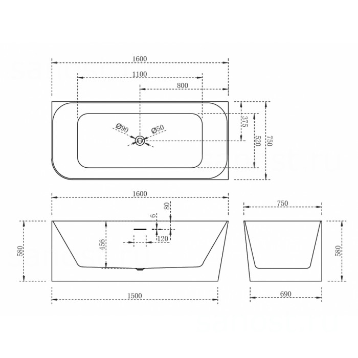 | Материалакрил | Длина, см160 | Ширина, см75 |