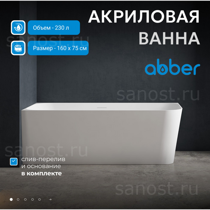 Технические характеристики Акриловая ванна ABBER AB9331-1.6 R белая