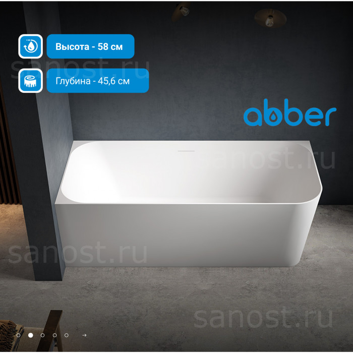 Акриловая ванна ABBER AB9331-1.6 R белая правосторонняя пристенная, материал акрил, объём 230 литров. Германия. Гарантия 10 лет.