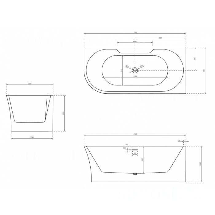 | Материалакрил | Длина, см170 | Ширина, см78 |