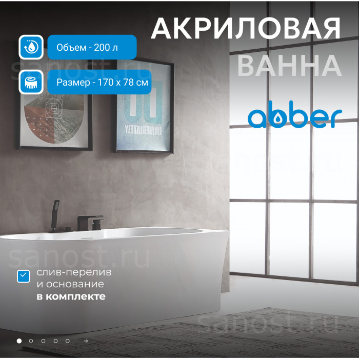 Технические характеристики Акриловая ванна ABBER AB9335-1.7 R белая