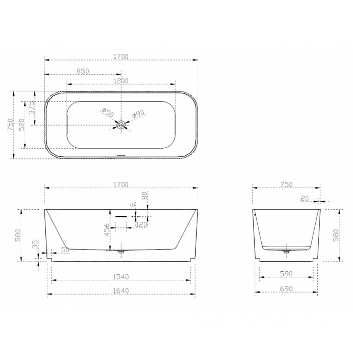 | Материалакрил | Длина, см170 | Ширина, см75 |
