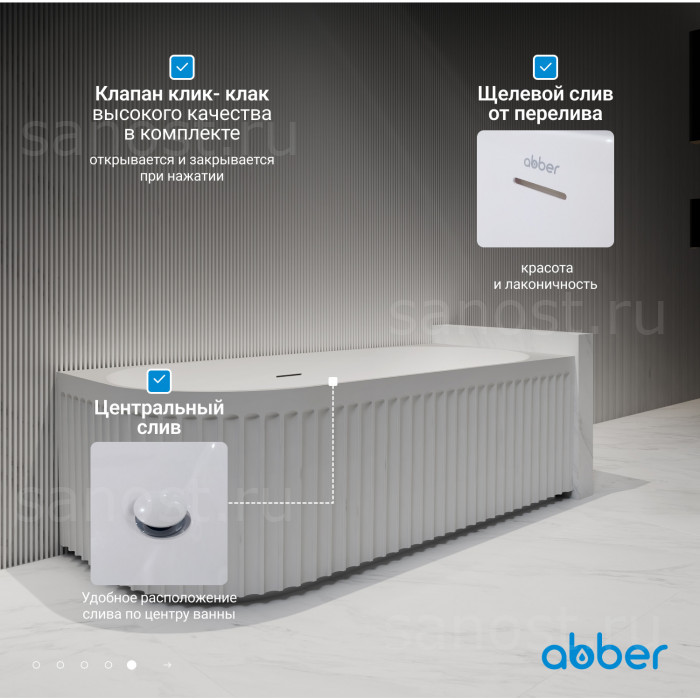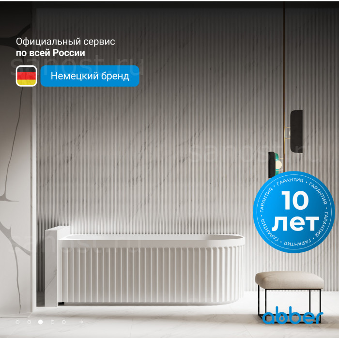 Акриловая ванна ABBER AB9363-1.7 белая универсальная отдельностоящая, материал акрил, объём 240 литров. Германия. Гарантия 10 лет.