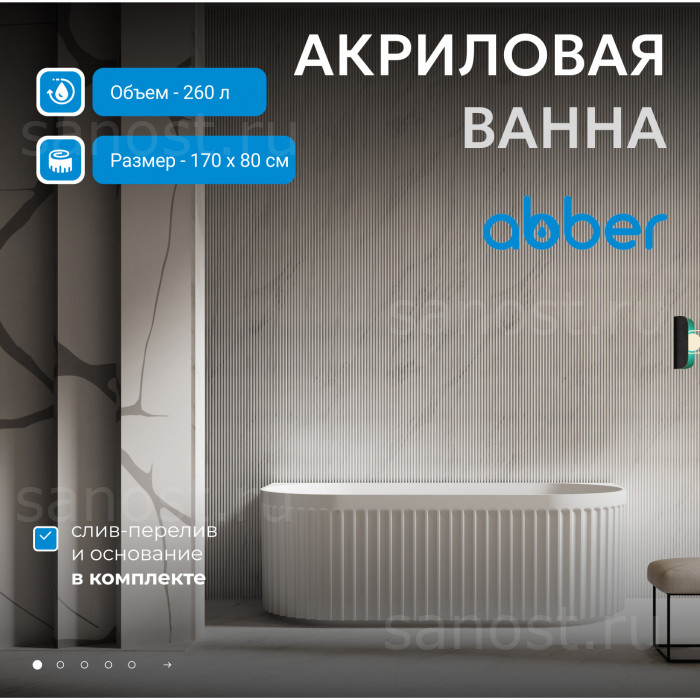 Акриловая ванна ABBER AB9416-1.7 белая универсальная пристенная, материал акрил, объём 260 литров. Германия. Гарантия 10 лет.