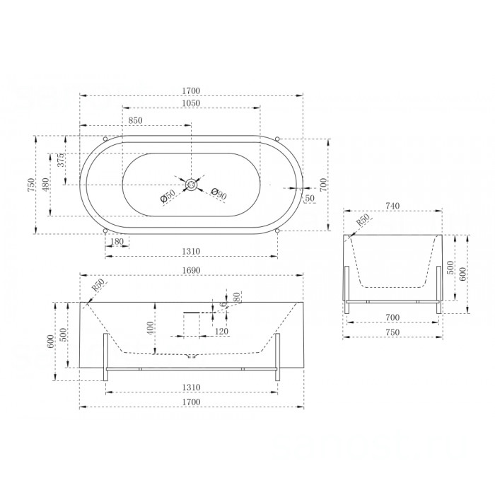 | Материалакрил | Длина, см170 | Ширина, см75 |