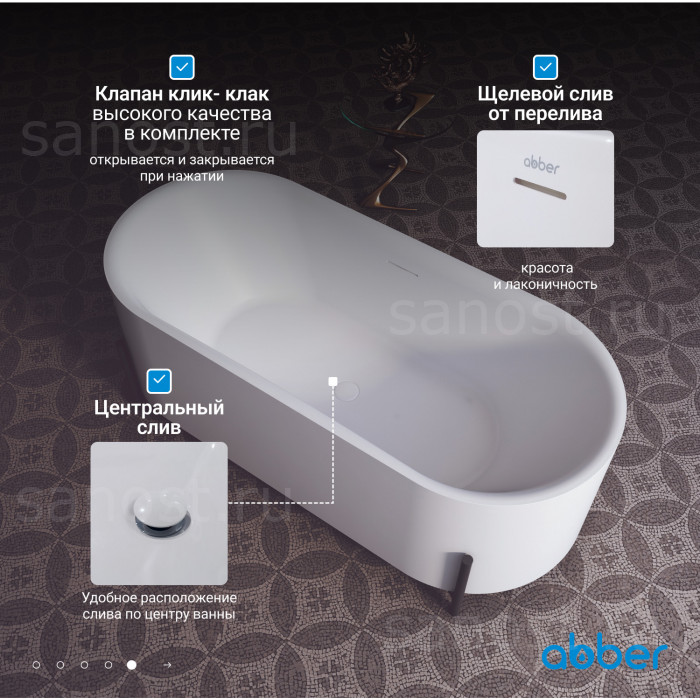 Технические характеристики Акриловая ванна ABBER AB9443 белая