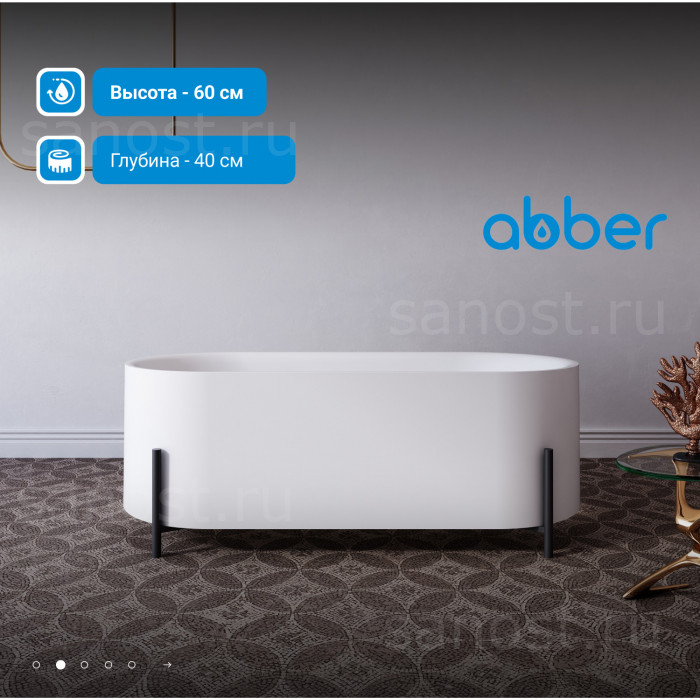 Акриловая ванна ABBER AB9443 белая универсальная отдельностоящая, материал акрил, объём 150 литров. Германия. Гарантия 10 лет.