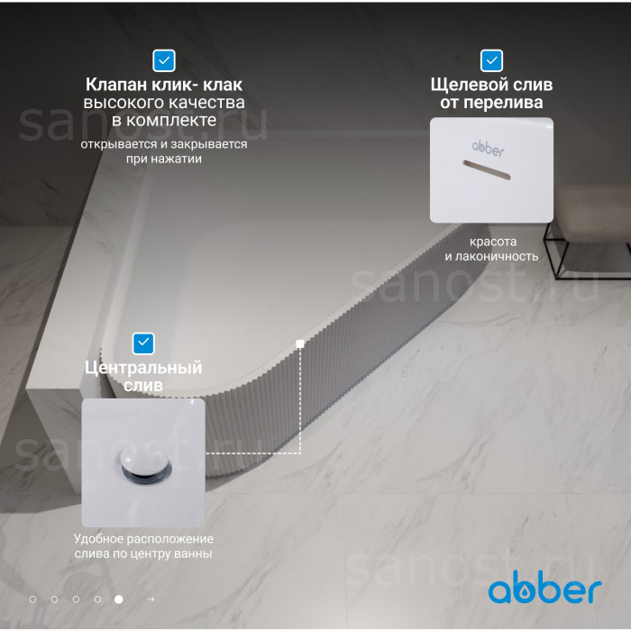 Технические характеристики Акриловая ванна ABBER AB9446MW белая матовая