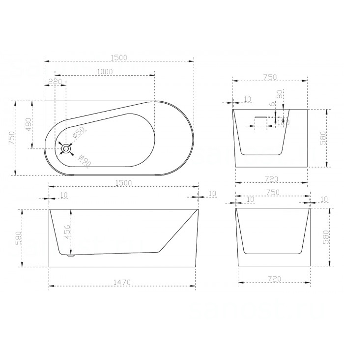 Технические характеристики Акриловая ванна ABBER AB9496-1.5 L белая