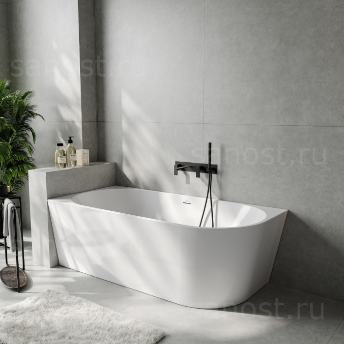 Акриловая ванна ABBER AB9502-1.8 L белая левосторонняя пристенная, материал акрил, объём 320 литров. Германия. Гарантия 10 лет.