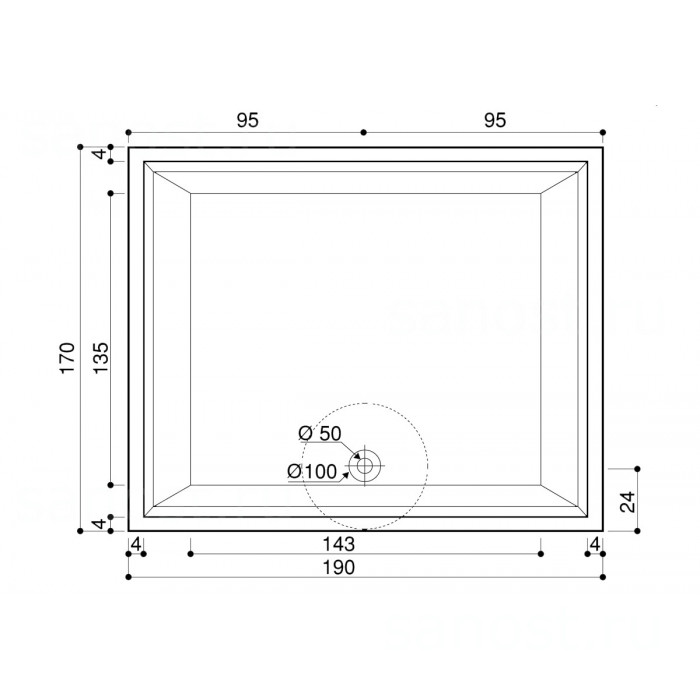 Технические характеристики Creavit ванна на плоской ножке Iris 190x170