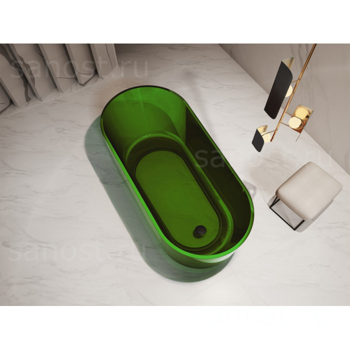 Прозрачная ванна ABBER Kristall AT9706Emerald зеленая универсальная отдельностоящая, материал полиэфирная смола, объём 245 литров. Германия. Гарантия 5 лет.