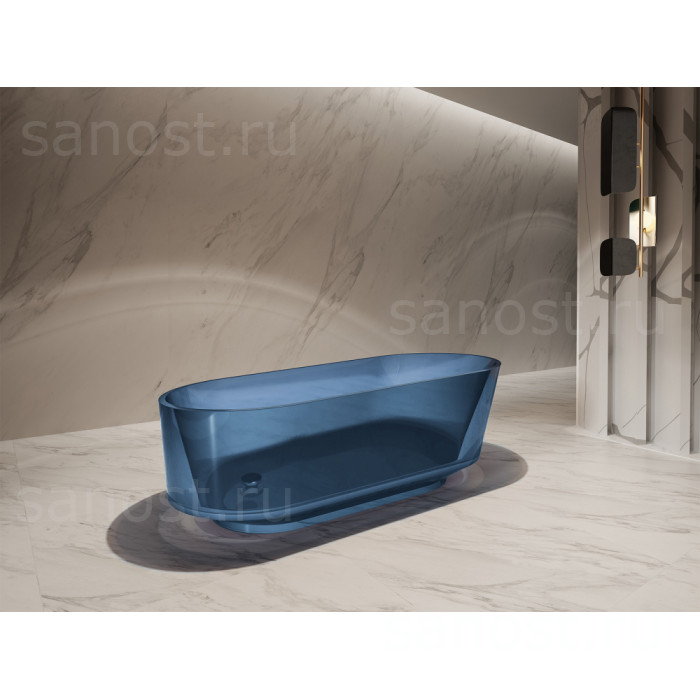 Прозрачная ванна ABBER Kristall AT9706Saphir синяя универсальная отдельностоящая, материал полиэфирная смола, объём 245 литров. Германия. Гарантия 5 лет.