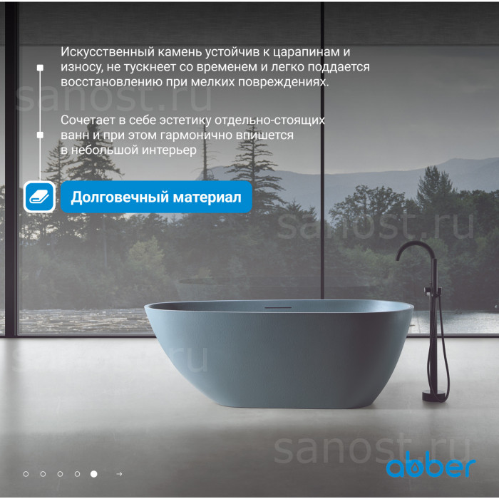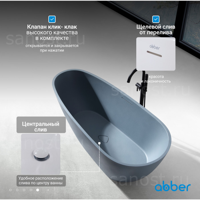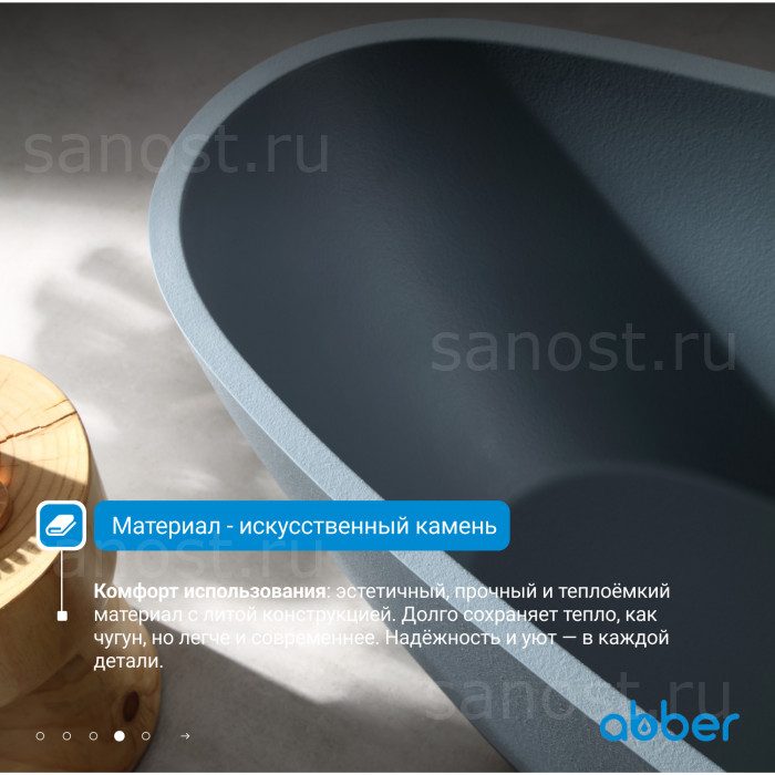 Ванна из искусственного камня ABBER Dortmund AM9911G серая матовая универсальная отдельностоящая, материал композитный камень Rock, объём 290 литров. Германия. Гарантия 10 лет.