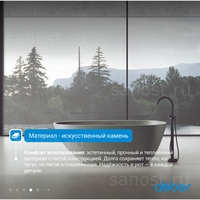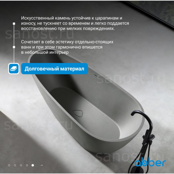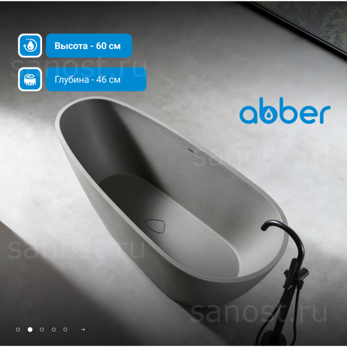 Ванна из искусственного камня ABBER Dortmund AM9911MLG светло-серая матовая универсальная отдельностоящая, материал композитный камень Rock, объём 290 литров. Германия. Гарантия 10 лет.