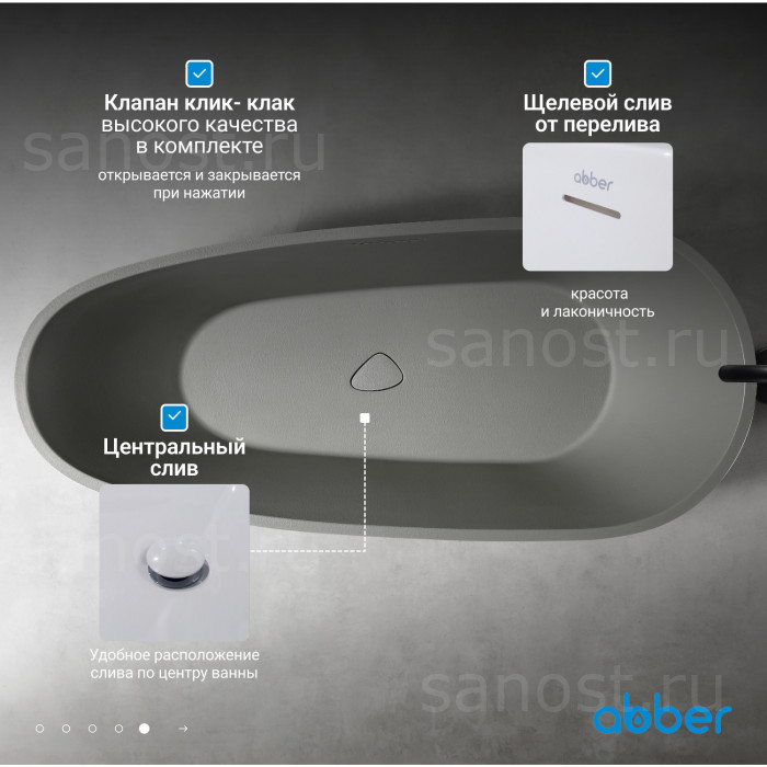 Технические характеристики Ванна из искусственного камня ABBER Dortmund AM9911MLG светло-серая матовая