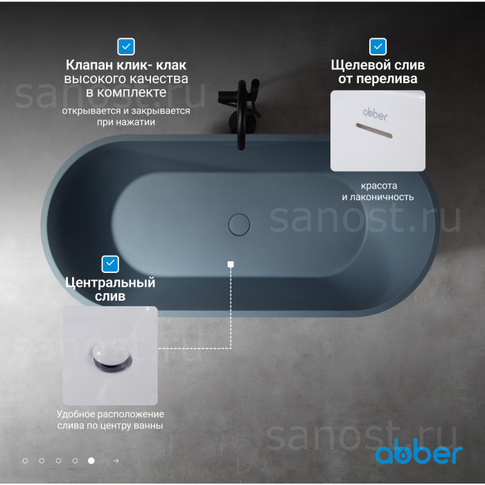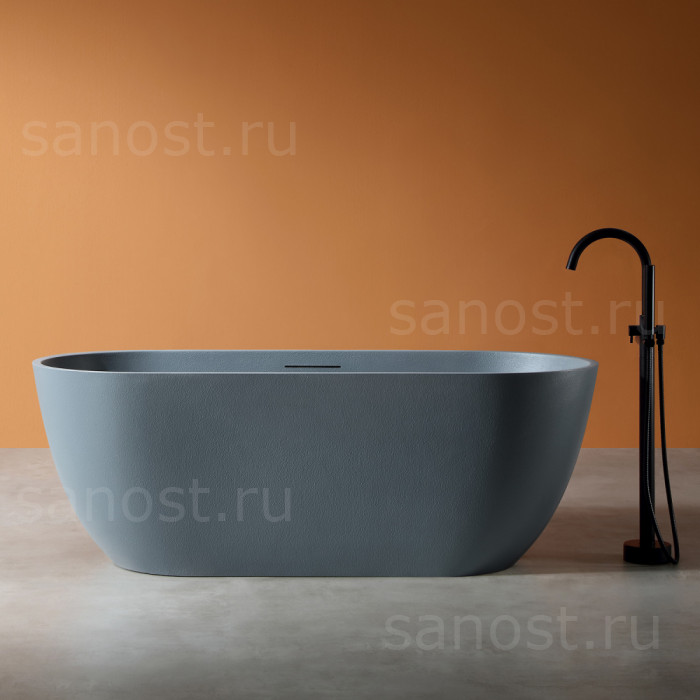 Ванна из искусственного камня ABBER Frankfurt AM9941G серая матовая универсальная отдельностоящая, материал композитный камень Rock, объём 325 литров. Германия. Гарантия 10 лет.