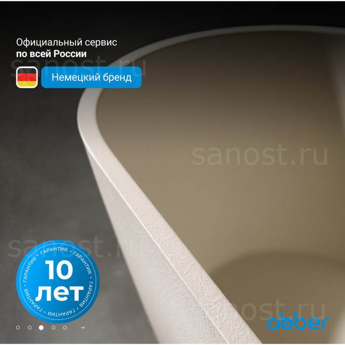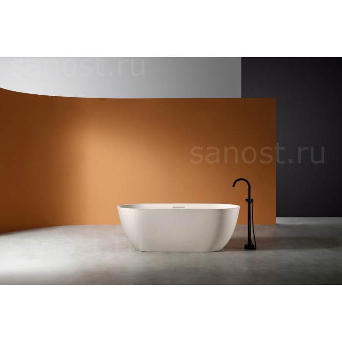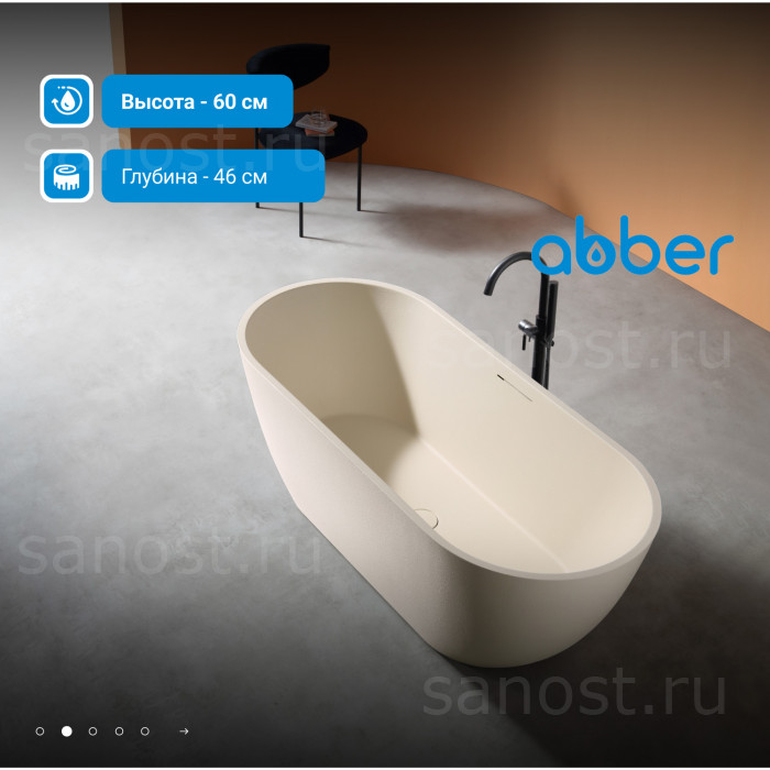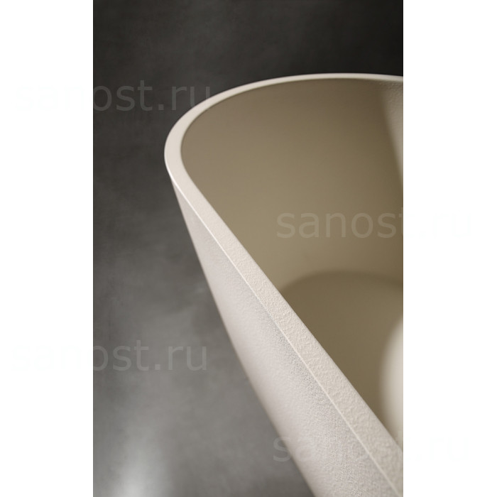Ванна из искусственного камня ABBER Frankfurt AM9941MBE светло-бежевая матовая универсальная отдельностоящая, материал композитный камень Rock, объём 325 литров. Германия. Гарантия 10 лет.