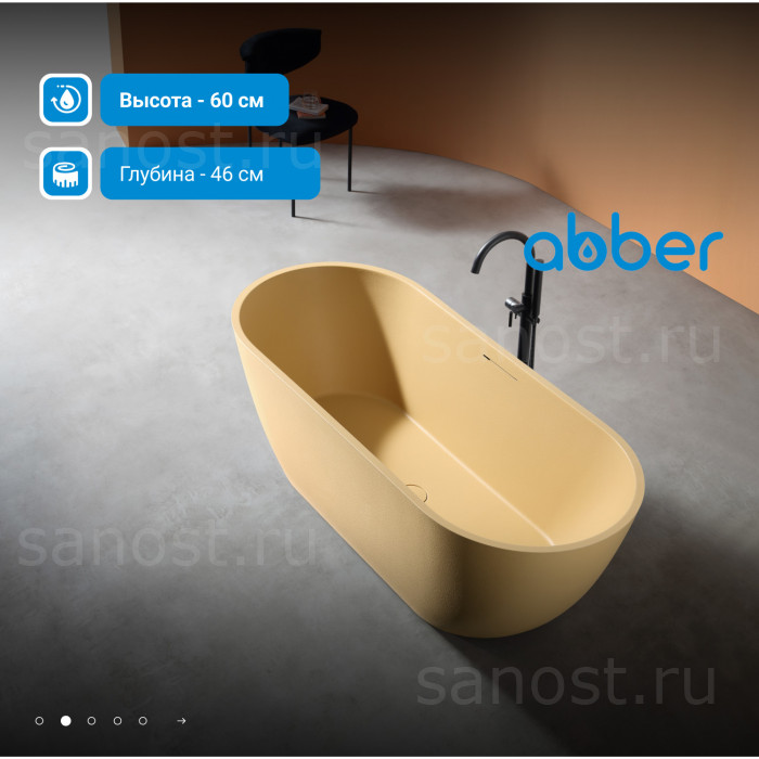 Ванна из искусственного камня ABBER Frankfurt AM9941MS песочная матовая универсальная отдельностоящая, материал композитный камень Rock, объём 325 литров. Германия. Гарантия 10 лет.