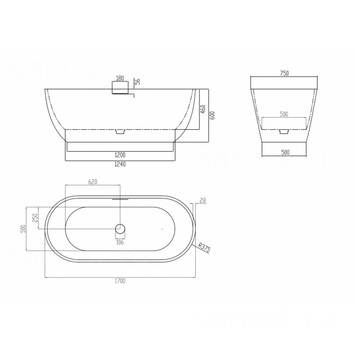 Технические характеристики Ванна из искусственного камня ABBER Frankfurt AM9941MS песочная матовая