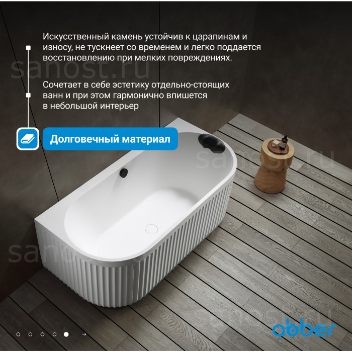 Ванна из искусственного камня ABBER Leipzig AM9916 белая матовая