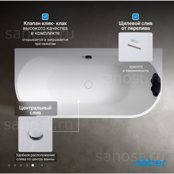 Технические характеристики Ванна из искусственного камня ABBER Leipzig AM9916 белая матовая