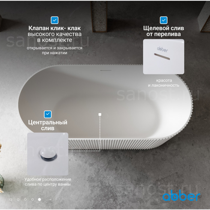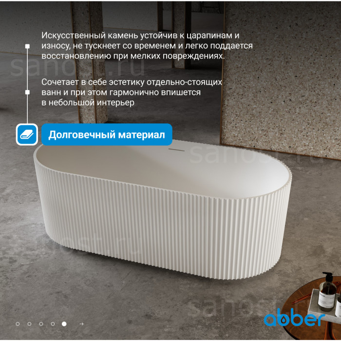 Ванна из искусственного камня ABBER Stein AS9601 белая матовая универсальная отдельностоящая, материал искусственный камень, объём 200 литров. Германия. Гарантия 10 лет.