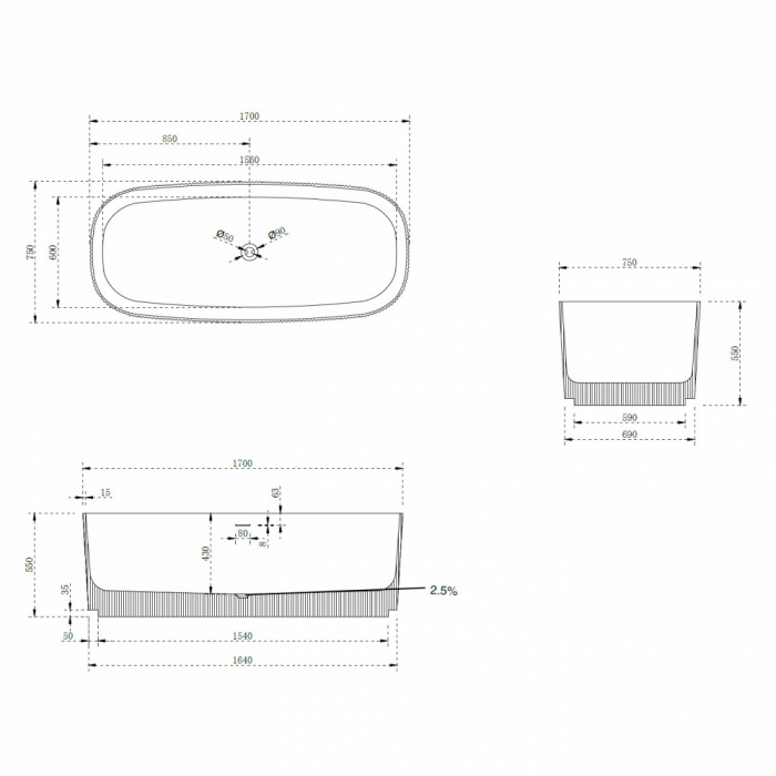 Технические характеристики Ванна из искусственного камня ABBER Stein AS9601 белая матовая