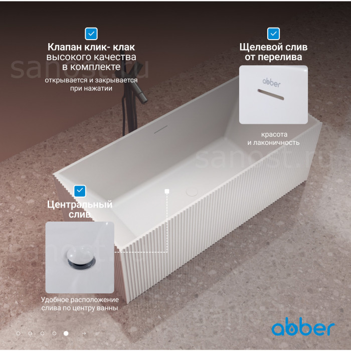 Ванна из искусственного камня ABBER Stein AS9602 белая матовая универсальная отдельностоящая, материал искусственный камень, объём 240 литров. Германия. Гарантия 10 лет.