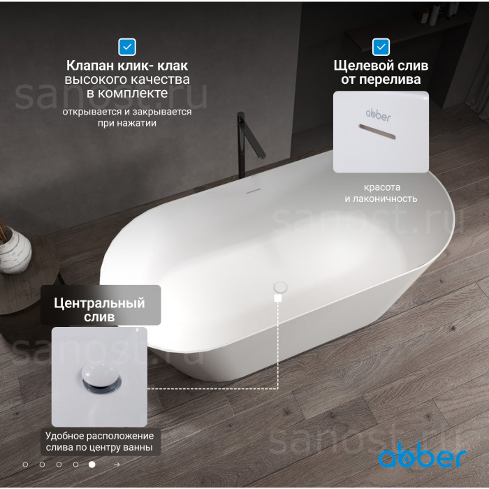 Ванна из искусственного камня ABBER Stein AS9605 белая матовая универсальная отдельностоящая, материал искусственный камень, объём литров. Германия. Гарантия 10 лет.