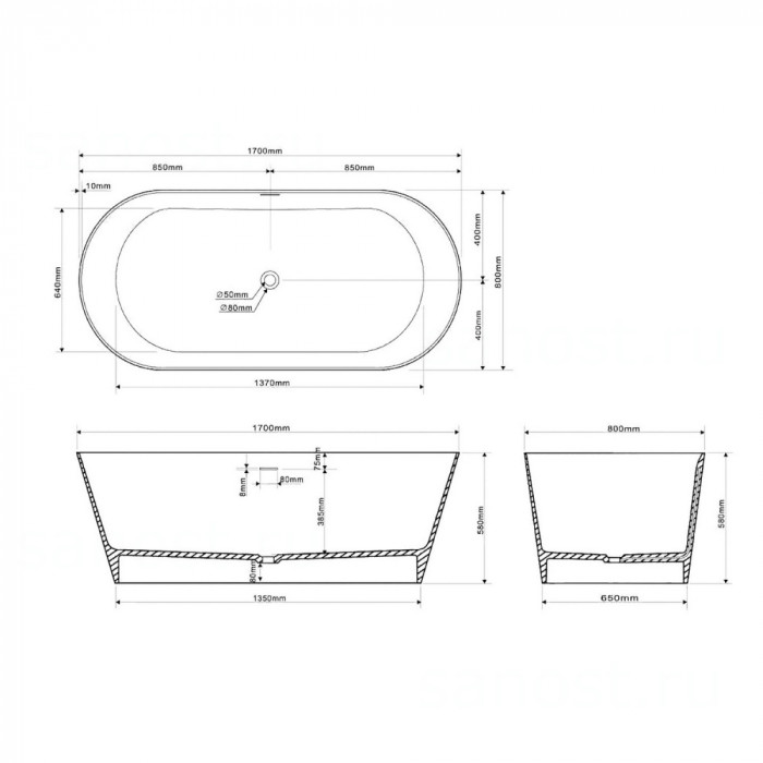 Технические характеристики Ванна из искусственного камня ABBER Stein AS9605 белая матовая