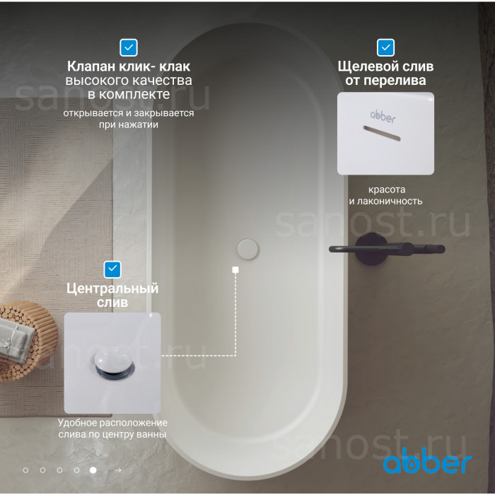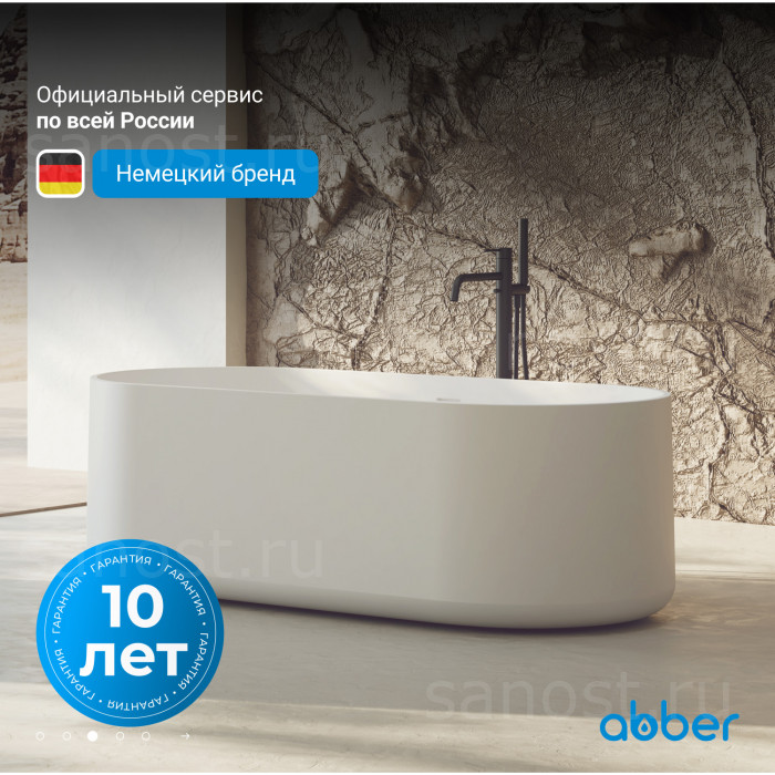 Ванна из искусственного камня ABBER Stein AS9607 белая матовая универсальная отдельностоящая, материал искусственный камень, объём 310 литров. Германия. Гарантия 10 лет.