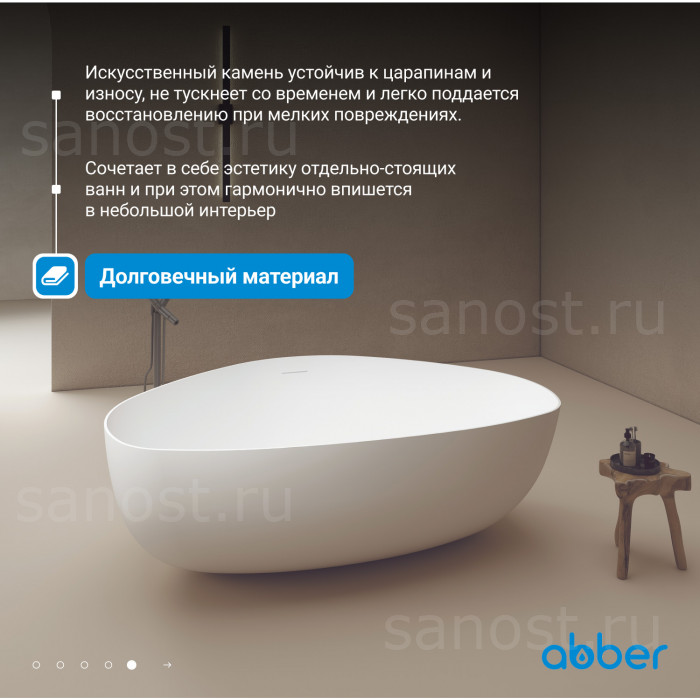 Ванна из искусственного камня ABBER Stein AS9608 белая матовая