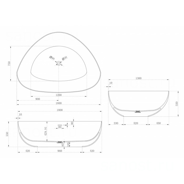 | Цветбелый матовый | Монтажотдельностоящая | Формаовальная |