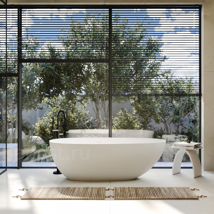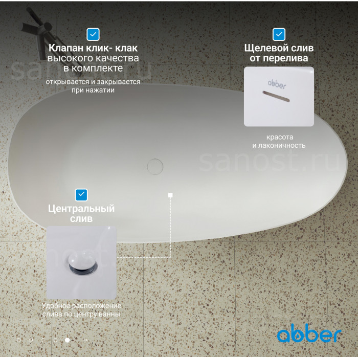 Ванна из искусственного камня ABBER Stein AS9611-1.6 белая матовая универсальная отдельностоящая, материал искусственный камень, объём 170 литров. Германия. Гарантия 10 лет.