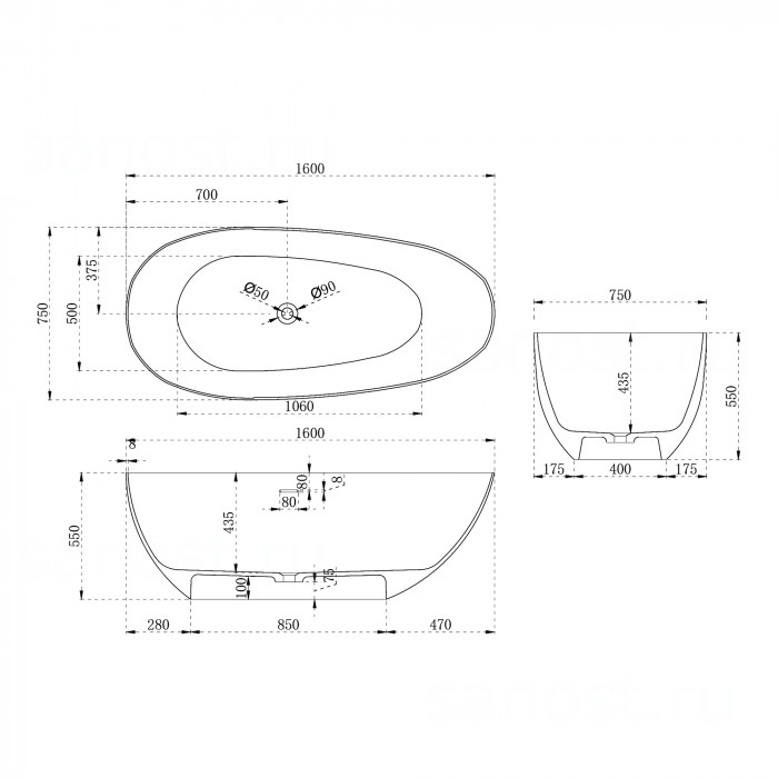 | Цветбелый матовый | Монтажотдельностоящая | Формаовальная |