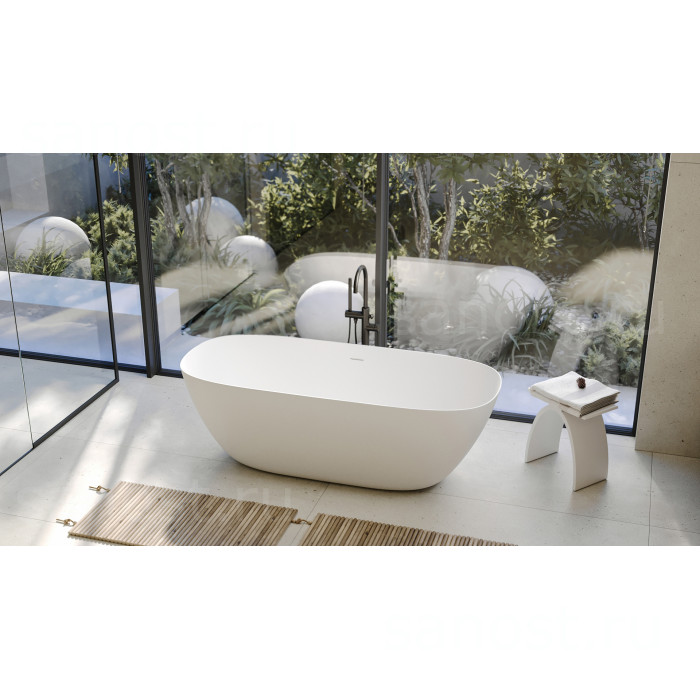 Ванна из искусственного камня ABBER Stein AS9612-1.7 белая матовая универсальная отдельностоящая, материал искусственный камень, объём 225 литров. Германия. Гарантия 10 лет.