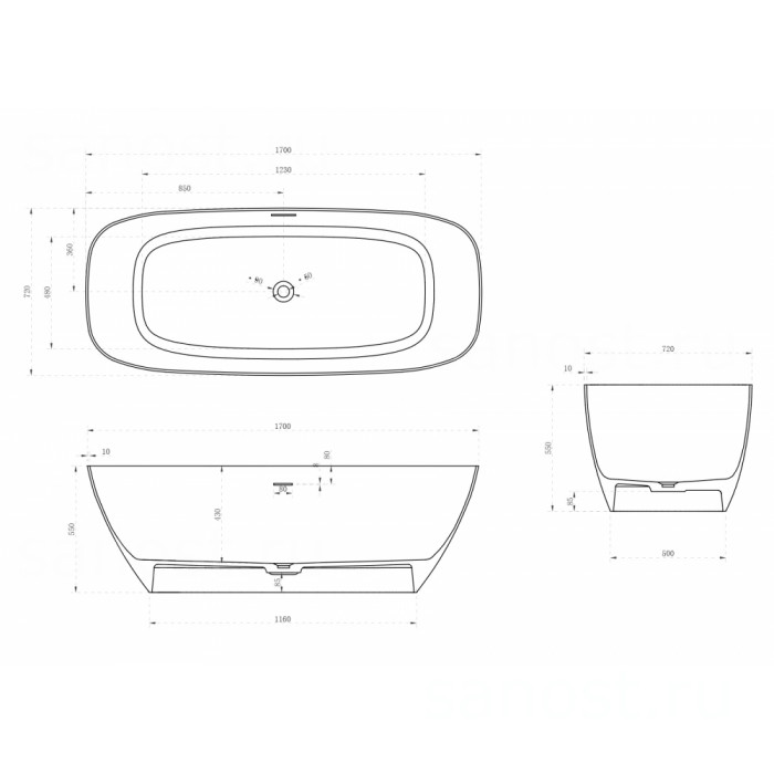 Технические характеристики Ванна из искусственного камня ABBER Stein AS9612-1.7 белая матовая
