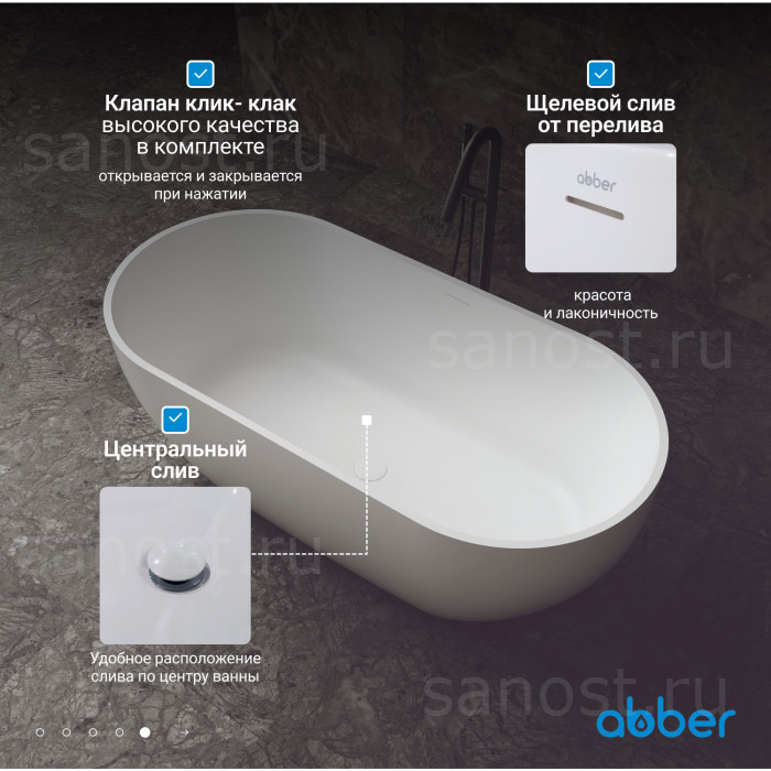 Ванна из искусственного камня ABBER Stein AS9613-1.6 белая матовая универсальная отдельностоящая, материал искусственный камень, объём 230 литров. Германия. Гарантия 10 лет.