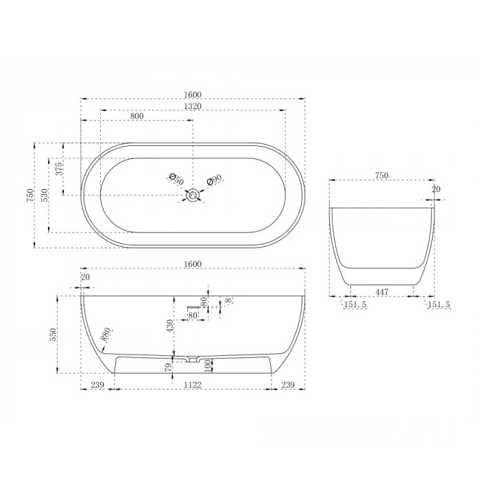 | Цветбелый матовый | Монтажотдельностоящая | Формаовальная |