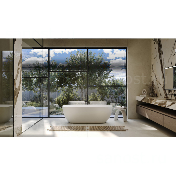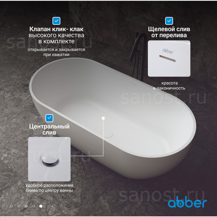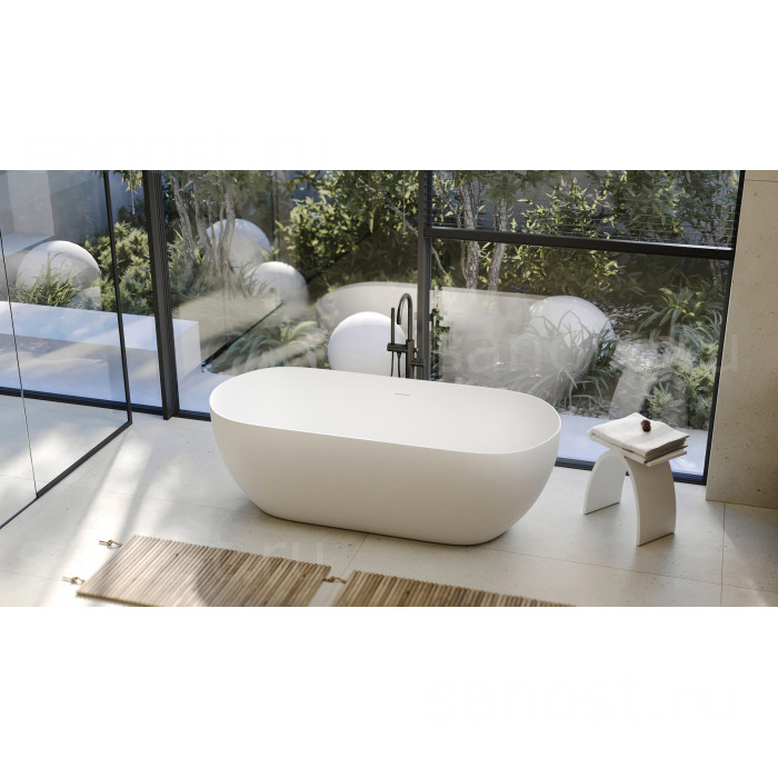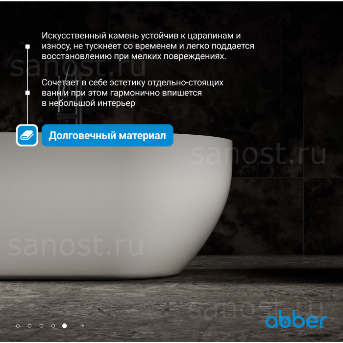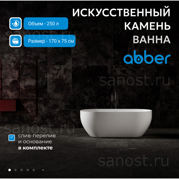 Ванна из искусственного камня ABBER Stein AS9613-1.7 белая матовая универсальная отдельностоящая, материал искусственный камень, объём 250 литров. Германия. Гарантия 10 лет.