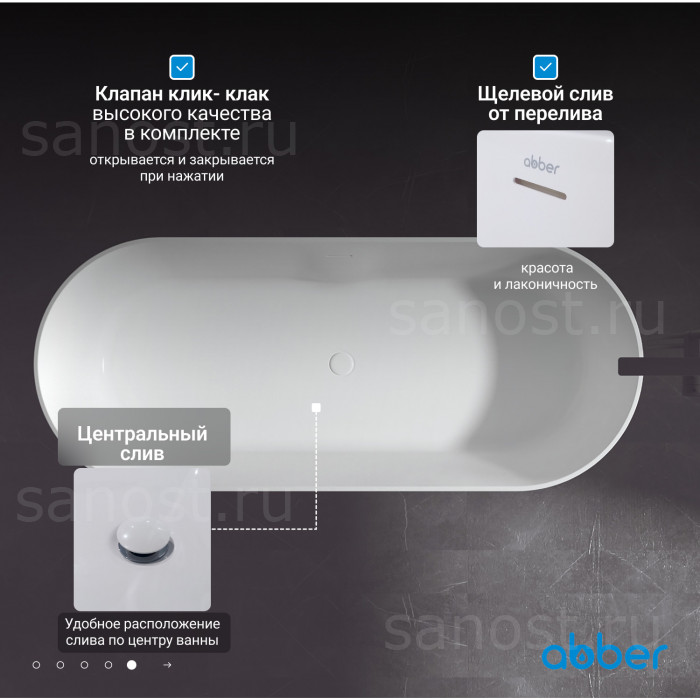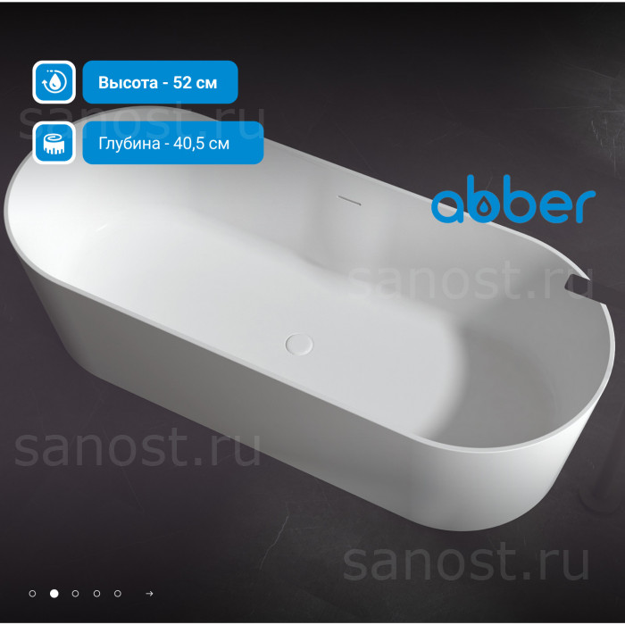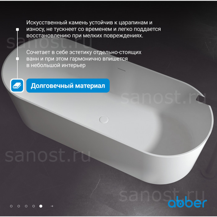 Ванна из искусственного камня ABBER Stein AS9614 белая матовая универсальная отдельностоящая, материал искусственный камень, объём 255 литров. Германия. Гарантия 10 лет.
