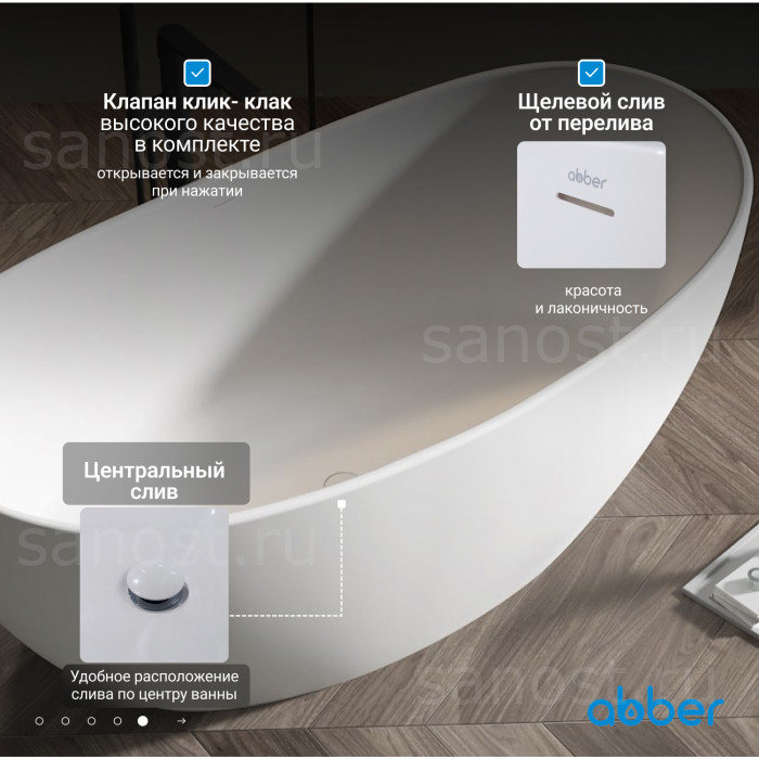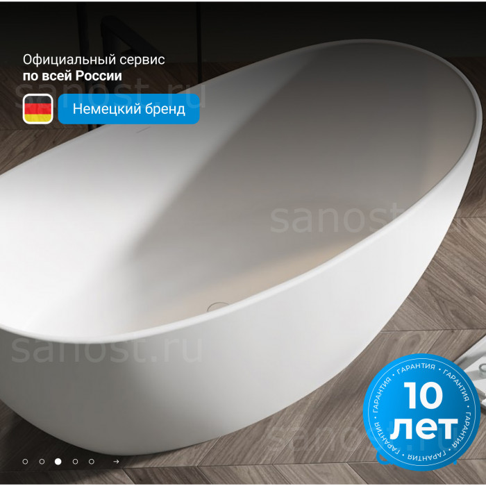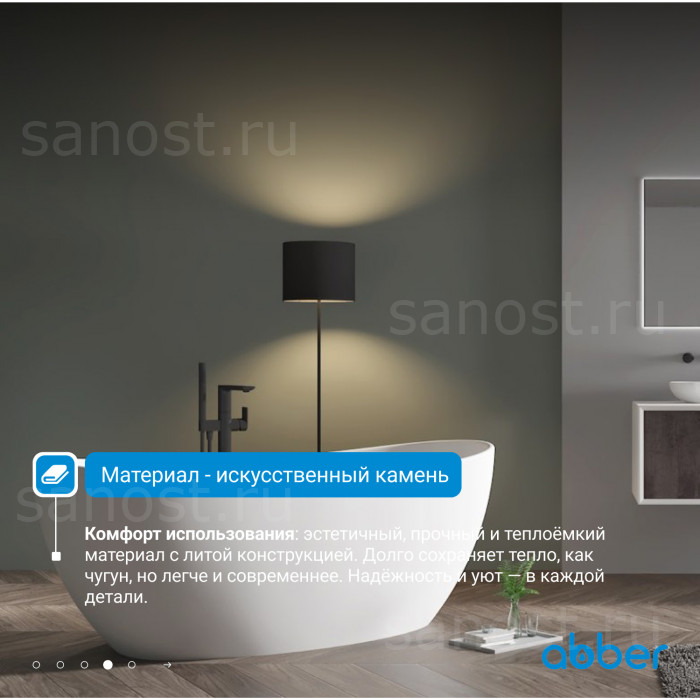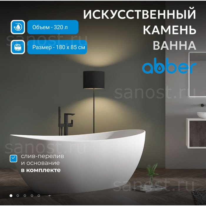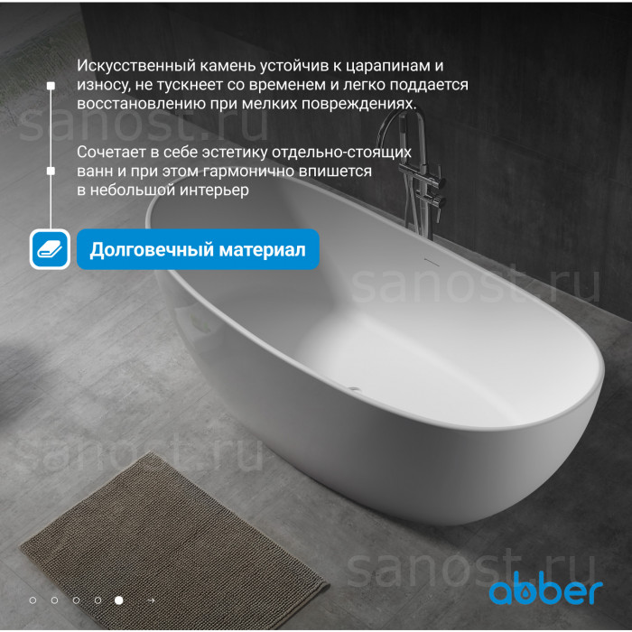 Ванна из искусственного камня ABBER Stein AS9615-1.8 белая матовая универсальная отдельностоящая, материал искусственный камень, объём 320 литров. Германия. Гарантия 10 лет.