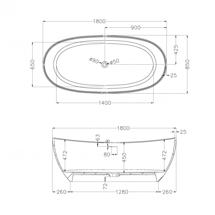| Цветбелый матовый | Монтажотдельностоящая | Формаовальная |