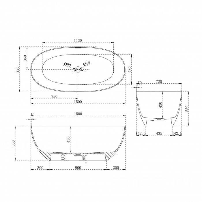 | Цветбелый матовый | Монтажотдельностоящая | Формаовальная |
