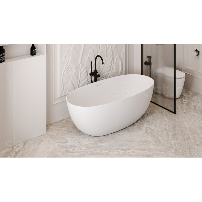 Ванна из искусственного камня ABBER Stein AS9624-1.5 белая матовая универсальная отдельностоящая, материал искусственный камень, объём 160 литров. Германия. Гарантия 10 лет.