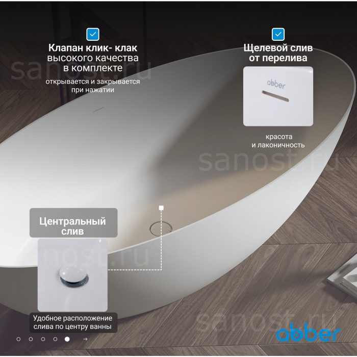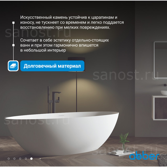 Ванна из искусственного камня ABBER Stein AS9625-1.8 белая матовая универсальная отдельностоящая, материал искусственный камень, объём 200 литров. Германия. Гарантия 10 лет.