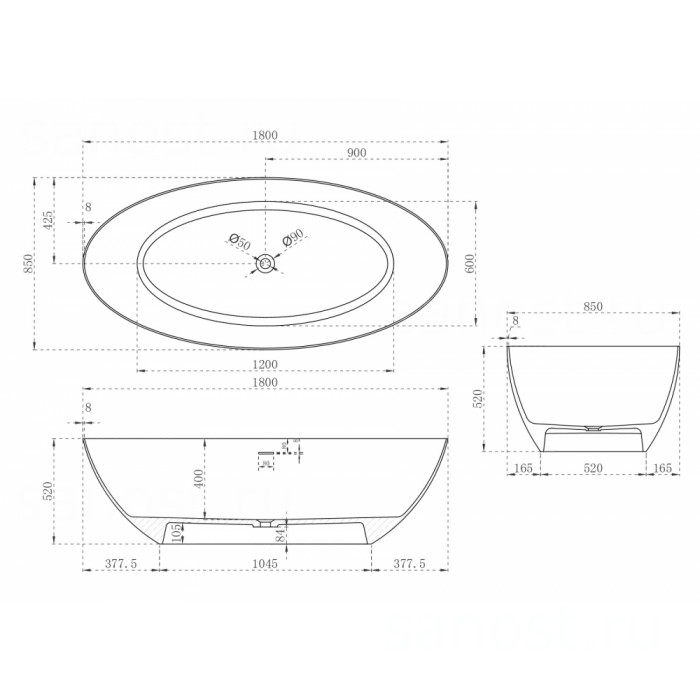 | Цветбелый матовый | Монтажотдельностоящая | Формаовальная |