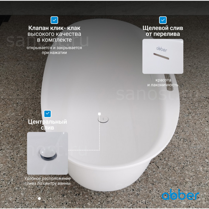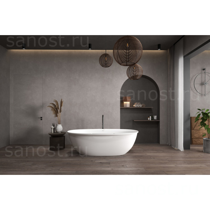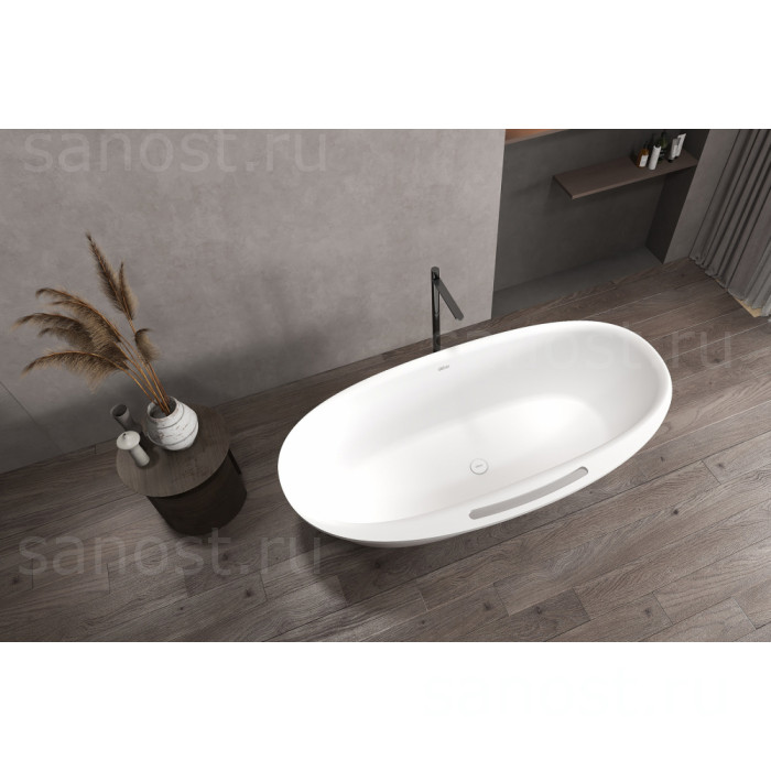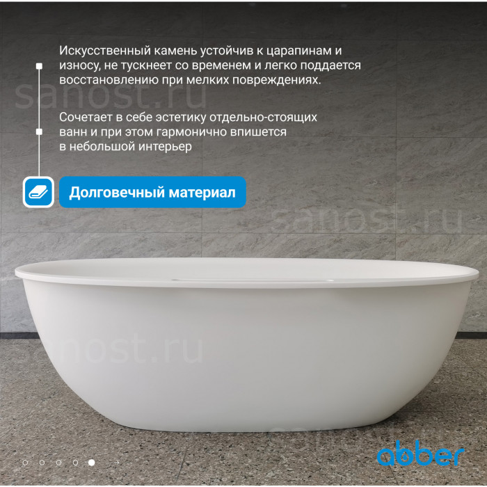 Ванна из искусственного камня ABBER Stein AS9631 белая матовая универсальная отдельностоящая, материал искусственный камень, объём 289 литров. Германия. Гарантия 10 лет.